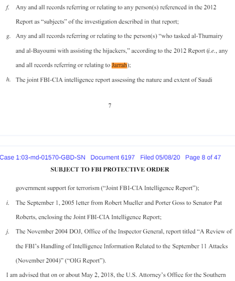 Jarrah has been on the radar screen of the lawyers for the 9/11 families for some time and is among nine current or former Saudi officials who they suspect have important information about the case and have sought to either question them or get access to FBI documents that mention them.