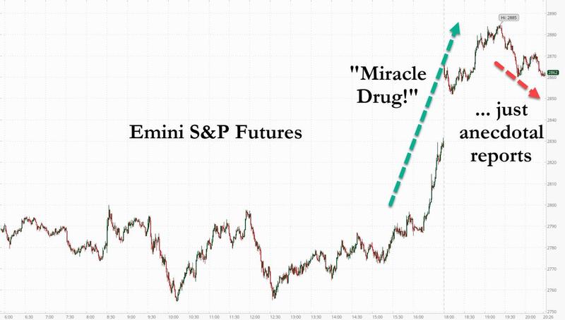 And so, one more attempt to ramp the market using fake news of an imminent drug has failed, with some observing that a Phase 1 drug trial is now the functional equivalent of a Phase 1 trade deal – both meaningless on their own, but with the power to send stocks surging when used tactically by unknown players.