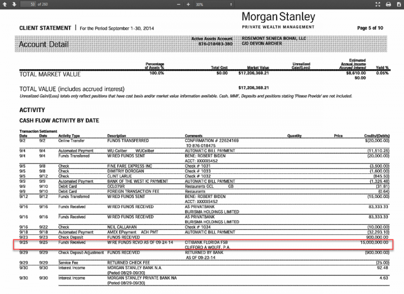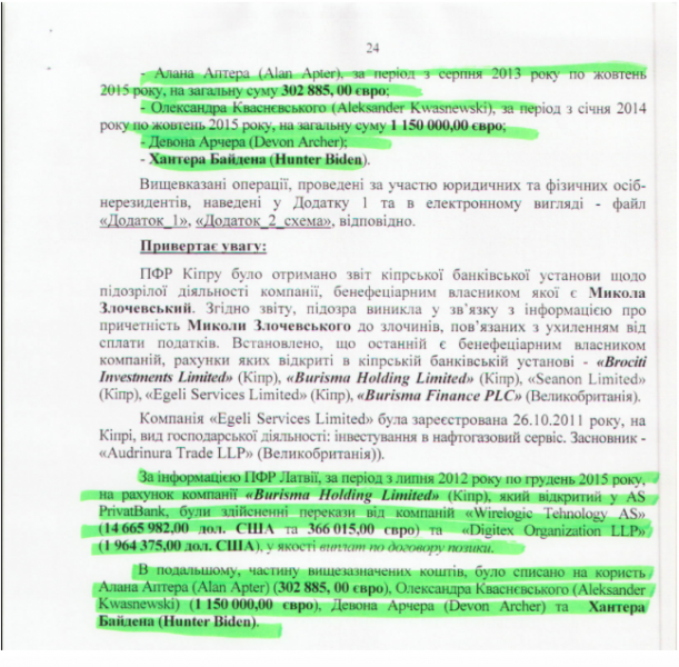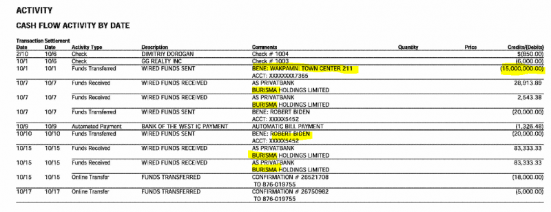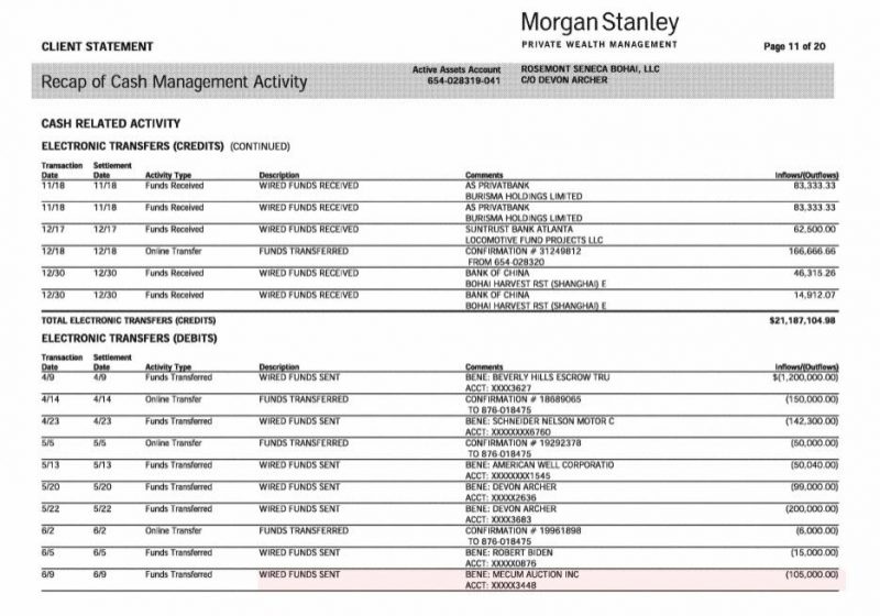 What’s more, there are several payments from “Wirelogic Technology AS” and “Digitex Organization LLP” in the amounts of 366,015 EUR and $1,964,375 US based on credit agreements – while $1,150,000 went to Devon Archer and Hunter Biden.
