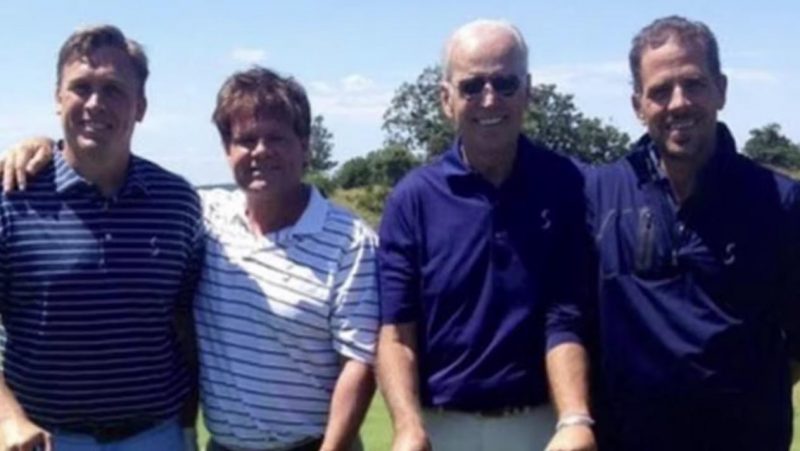 Devon Archer (far left) is pictured with Joe and Hunter Biden. (Screenshot from Twitter)