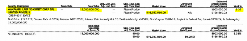 On September 25, 2014 a wire of $15,000,000 was received from Florida attorney, Clifford A Wolff. It was subsequently used to buy a $15 million bond from Wakpamni Town Center – the scheme linked to Archer’s overturned conviction.