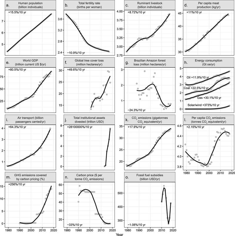 When absorbed in sequence, the charts lay out a devastating trend for planetary health. From meat consumption, greenhouse gas emissions and ice loss to sea-level rise and extreme weather events, they lay out a grim portrait of 40 years of squandered opportunities.