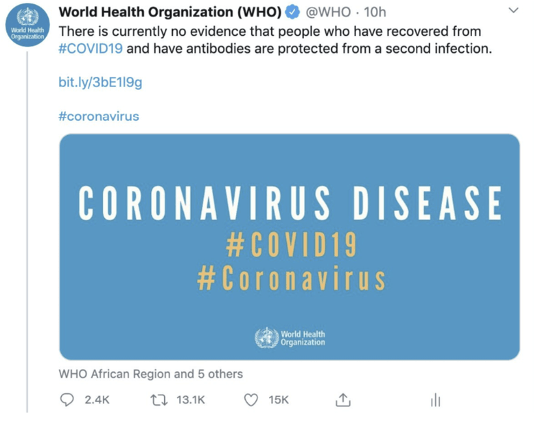 …“no evidence” means “something like ‘no definitive proof, yet’… But the average person is going to read it as ‘there’s no immunity to coronavirus,’ which is likely false and not a good summation of the evidence.”